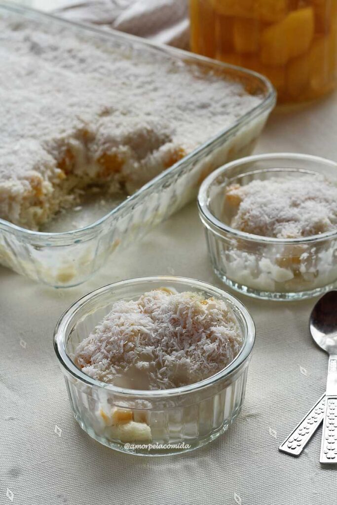 Com poucos ingredientes facilmente encontrados em qualquer mercado, você vai se surpreender com o sabor desta sobremesa de pêssego com creme de coco.