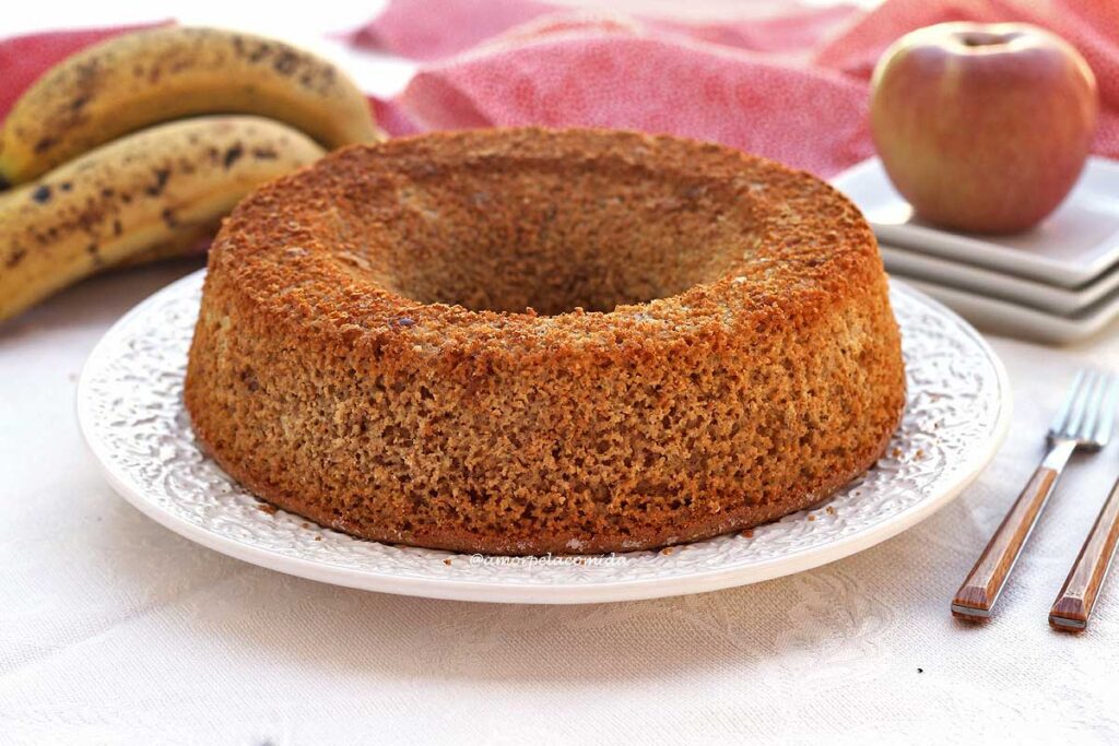 Por ser uma receita de bolo de banana e maçã sem açúcar é uma receita que estragará mais rápido.