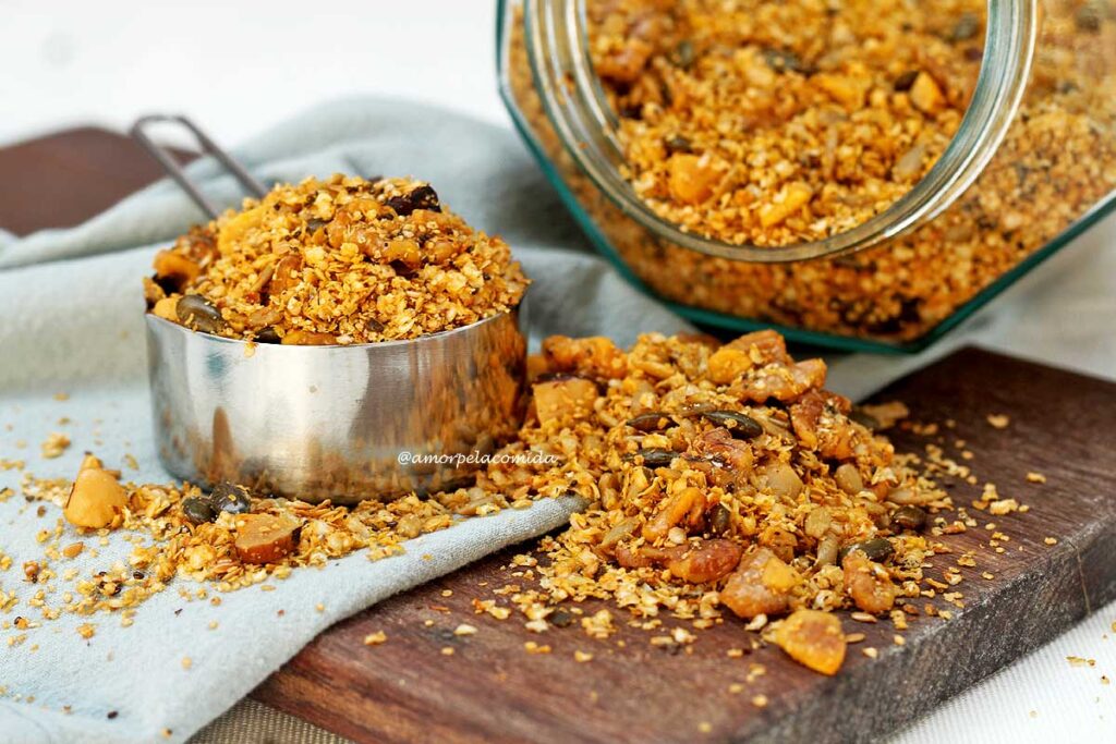 Talvez você esteja acostumado a comer granola com iogurte, com frutas, mas nessa versão salgada você tem um leque de opções.
